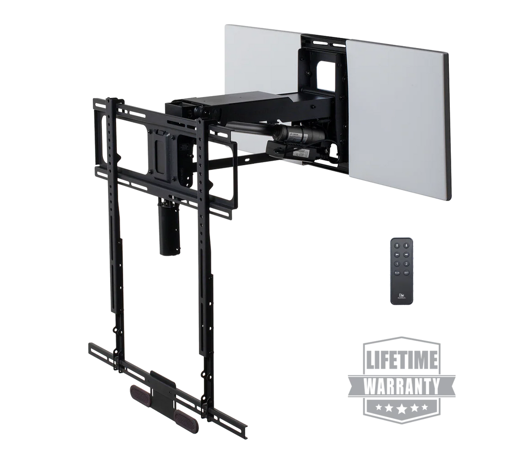 AUTOMATIC DROP & SWIVEL: Patented, proprietary software and precision electronic actuators lowers and swivels the TV quickly and automatically through the use of 2 Memory presets on the remote control.